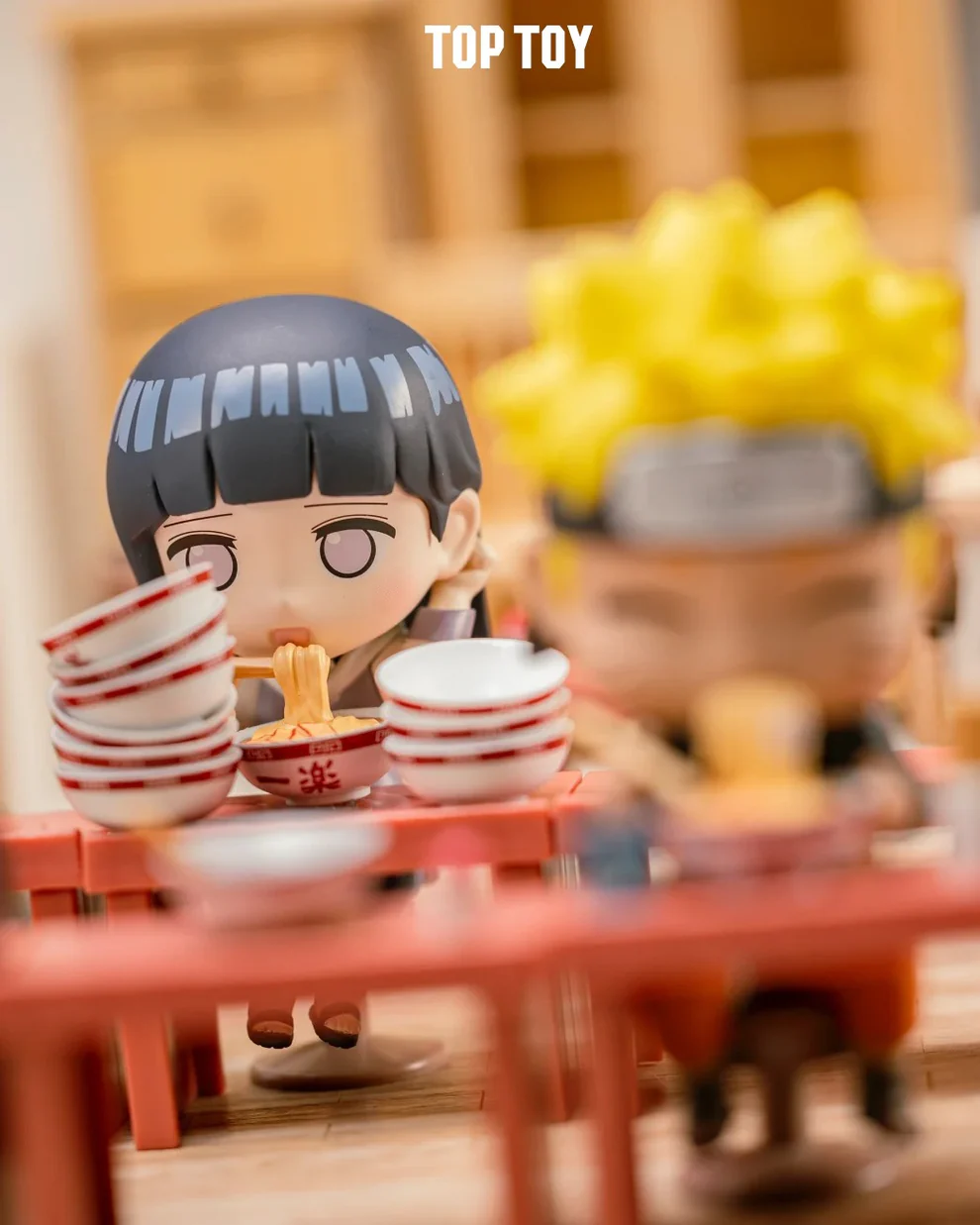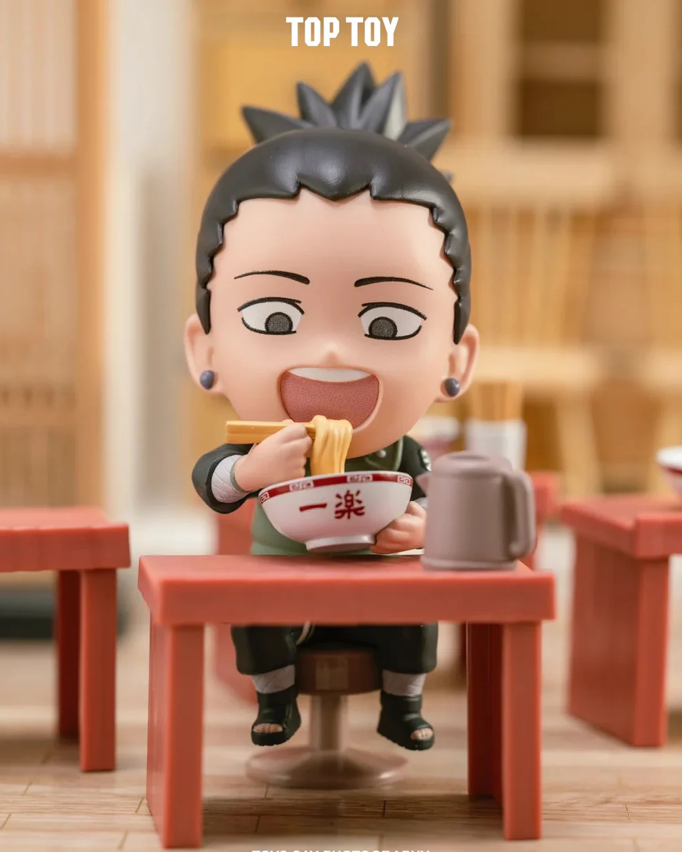 Produced by TOPTOY, these figures are crafted with detailed sculpting and vibrant colors. Each character appears in a cute chibi-style design, sitting at a ramen table with bowls, chopsticks, and other small accessories that recreate the famous ramen scenes from the anime.